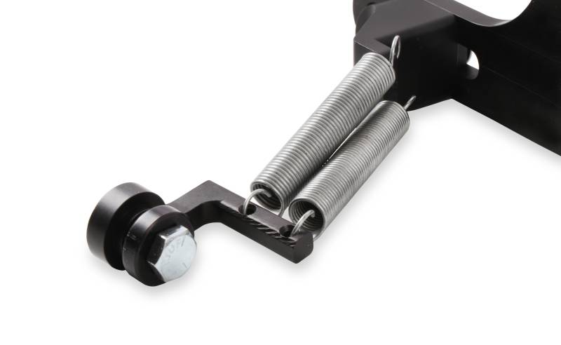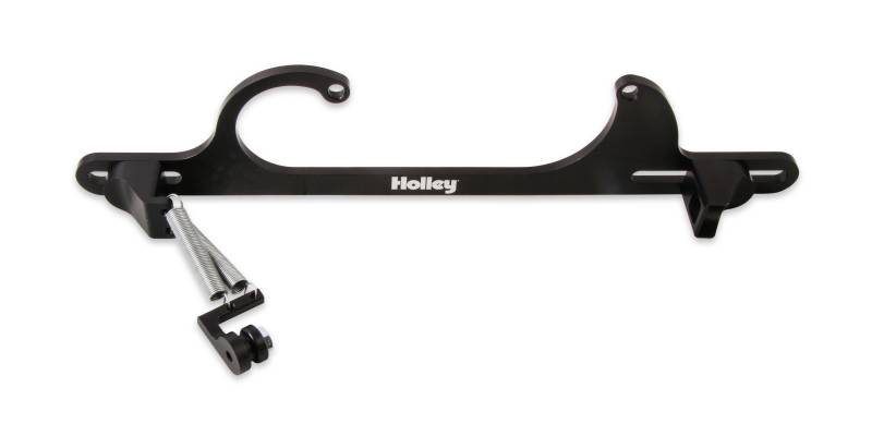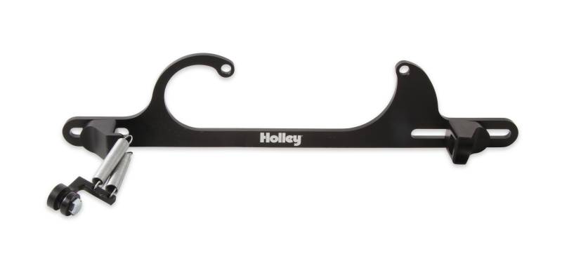 The perfect finishing touch for street rods, street machines and street/strip cars and trucks. Why go cheap on a throttle return bracket when you can get a good looking, quality piece made of billet aluminum? Let's face it, the throttle cable/return spring bracket is one of the first things your eyes focus on when you lift the hood of any car. You can't help but miss it because it's right out there in the open!\nIf you're going the route, go the whole way with something that looks good while providing a real measure of safety. This black anodized bracket is multi-adjustable to work on Holley models 4150 and 4160 carburetors. It includes a dual return spring combination that's perched on a uniquely effective mount. Hardware is all stainless steel to stand up to the rigors of time.The Holley name is boldly engraved and provides a very special touch to this outstanding product.\nFor use with GM cable