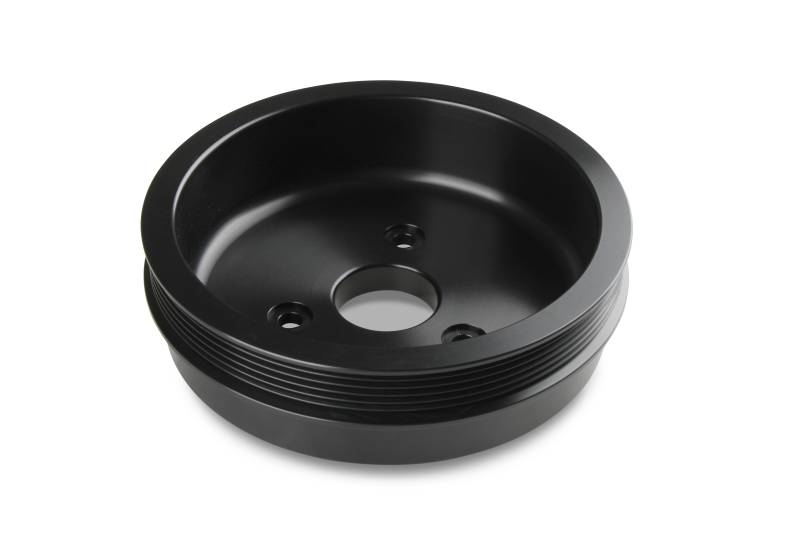 Holley's Mid-Mount Accessory Drive System is now offered for the serious racer in mind. If you need a front drive system for your LS engine racecar, they are now available without air conditioning and power steering depending upon your needs!\nHolley's Premium Mid-Mount complete accessory system has all accessories pulled in tighter than other accessory drives. At the heart of the system is a "bracketless" design, where the accessories bolt directly to the water pump for a clean, integrated form. The design offers superb engine visibility to show off your horsepower, not your accessories. Among the many swap friendly features are bottom heater outlets for clearance in tight applications. The Holley designed alternator is just as innovative. This premium alternator utilizes 6-phase technology as found on the C7 Corvette. The water pump also shares its design efficiencies with that of the C7 Corvette.\nThe Mid-Mount drive completes Holley's trilogy of accessory solutions giving a third option compared to the High and Low-Mount previously released. All three accessory solutions are for LS engines.\nWhen we say "complete", we mean complete. The Mid-Mount system comes with everything you need. All accessories are included; the water pump, alternator, and an SFI certified damper w/hard anodized billet crank pulley. All pulleys and the belt are supplied. Even heater hose adapters, and the alternator plug/harness are included. Easy assembly was a priority during the entire development of this accessory solution. Color graphical instructions walk you through every step of the ultra-easy installation.\nThe Premium Mid-Mount system comes with dress up pulley covers and an SFI certified damper. Partnered with this damper is a billet 6061-T6 aluminum hard anodized crank pulley. This system is ready for the racetrack if you want to play or just be ready for anything on the street.\nPatent - www.holley.com/patents/
