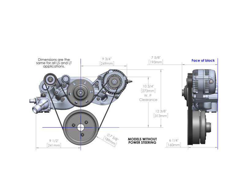 Holley's Mid-Mount Accessory Drive System is now offered for the serious racer in mind. If you need a front drive system for your LS engine racecar, they are now available without air conditioning and power steering depending upon your needs!\nHolley's Premium Mid-Mount complete accessory system has all accessories pulled in tighter than other accessory drives. At the heart of the system is a "bracketless" design, where the accessories bolt directly to the water pump for a clean, integrated form. The design offers superb engine visibility to show off your horsepower, not your accessories. Among the many swap friendly features are bottom heater outlets for clearance in tight applications. The Holley designed alternator is just as innovative. This premium alternator utilizes 6-phase technology as found on the C7 Corvette. The water pump also shares its design efficiencies with that of the C7 Corvette.\nThe Mid-Mount drive completes Holley's trilogy of accessory solutions giving a third option compared to the High and Low-Mount previously released. All three accessory solutions are for LS engines.\nWhen we say "complete", we mean complete. The Mid-Mount system comes with everything you need. All accessories are included; the water pump, alternator, and the crank damper. All pulleys and the belt are supplied. Even heater hose adapters, and the alternator plug/harness are included. Easy assembly was a priority during the entire development of this accessory solution. Color graphical instructions walk you through every step of the ultra-easy installation. This system is ready for the racetrack if you want to play or just be ready for anything on the street.\nPatent - www.holley.com/patents/
