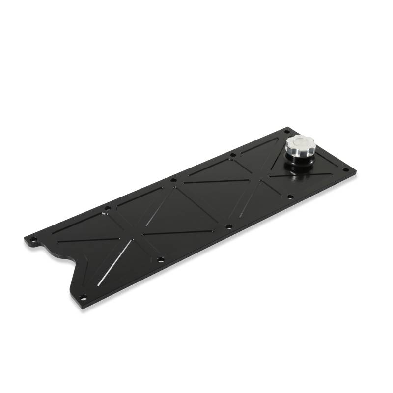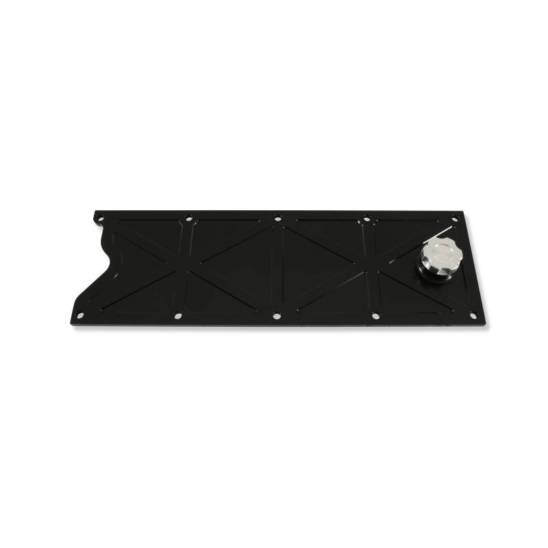 Holley's LS valley covers with oil fill provisions are the latest addition to our expansive lineup of LS engine dress up products. Machined from billet aluminum and featuring a modern, trussed design with an integrated oil fill neck and billet oil fill cap, these LS valley covers are the perfect upgrade for your LS engine if you are looking for a subtly custom touch. These valley covers are machined smooth on the underside, allowing for the elimination of Displacement-On-Demand (DOD), and instead features an ample gasket sealing surface and provisions for re-installing the oil pressure sensor if necessary.\nEach valley cover is custom machined for either LS1/LS6 (10 bolt) or LS2/LS3/LS7/LSX (11 bolt) patterns and Holley / Mr. Gasket offers all the necessary gaskets and upgraded hardware options to complete your installation. The new LS valley covers with oil fill provisions are available in three unique finishes: natural billet (clear anodized for protection), polished billet, and black anodized billet.
