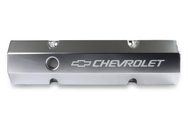 Holley is pleased to release its latest fully licensed product--GM Track Series Fabricated Aluminum Valve Covers. The GM Track Series family of valve covers gives you an excellent way to add a high-end fabricated look combined with a lightweight and tough valve cover for your favorite Chevy engine. These valve covers are constructed of 6061 T5 sheet aluminum, feature a laser etched "Chevrolet" and Bow Tie logo, and precision TIG welded for a proper fit. They are available in silver anodized or black coated finishes along with various heights to clear most popular rocker arm combinations. All of our valve covers include mounting hardware for quick and simple installation.