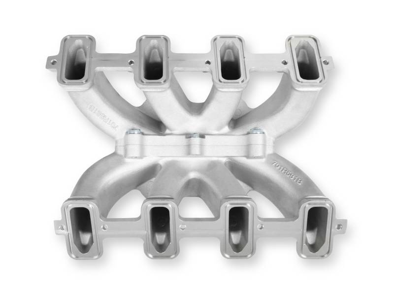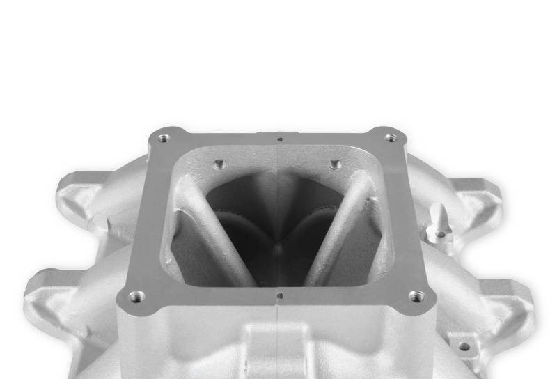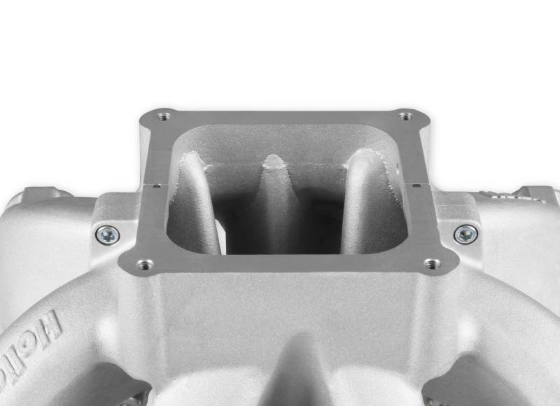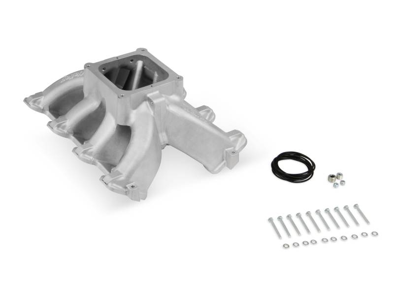 The new Holley Single-Plane Race intake manifold is designed with maximum performance in mind. Featured is a two-piece split design that provides access for all levels of porting and modification. With shoulder bolt locators and O-ring seal, disassembly & reassembly is simple and precise.\nThe LS Race single-plane intake manifold is designed for hi-performance/racing engine applications, 5.3 to 6.2+ liter displacements, N/A or with power adders. The large volume 4500 plenum and optimized runners provide airflow potential for Hi-RPM engines with max power at 7500-8000+ RPM.\nThe manifold with AN-8 fuel rails fits GM LS Gen III engines with cathedral port heads and has a 4500 Dominator style carb flange for carburetors, EFI throttle bodies, or EFI throttle body elbows, and is configured with a LS MAP sensor port along with other NPT plenum vacuum or air-temp sensor ports.