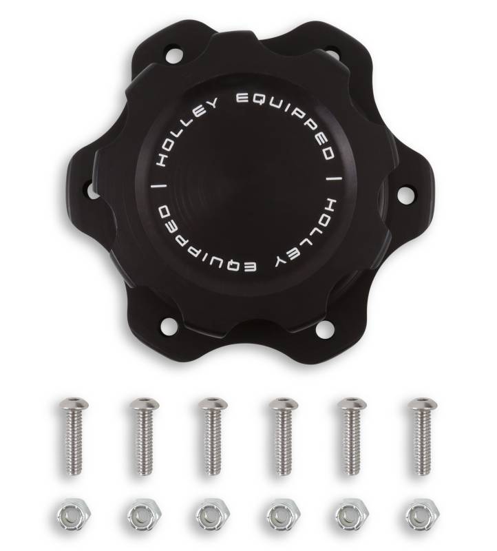 Looking for an alternative to your stock fuel cell cap or maybe you need a fill cap for that custom oil tank or valve cover you are building? Well, look no further! Holley has created a full line of Billet Fuel Cell Caps and Billet Fill Caps. Holley caps are CNC machined from 6061-T6 billet aluminum and they feature a bright black anodize for great looks and corrosion protection. Each cap features a laser etched Holley Equipped logo so you know it is quality product.\nThe Holley Billet Fuel Cell Caps are available for Jaz, Harwood, or RCI fuel cells. The 241-226 kit features a 4.438" 6 bolt flange and has a large 3" opening with an easy to grip screw on cap that utilizes an O-ring seal. Stainless steel hardware is included for an easy installation.