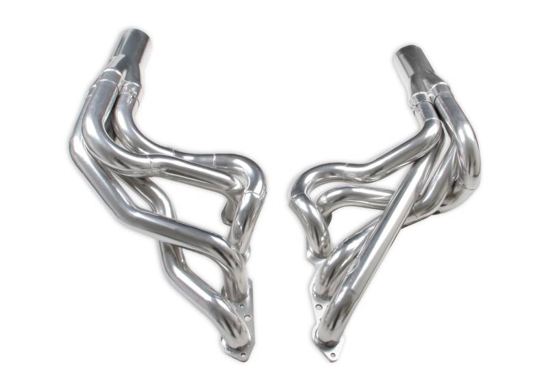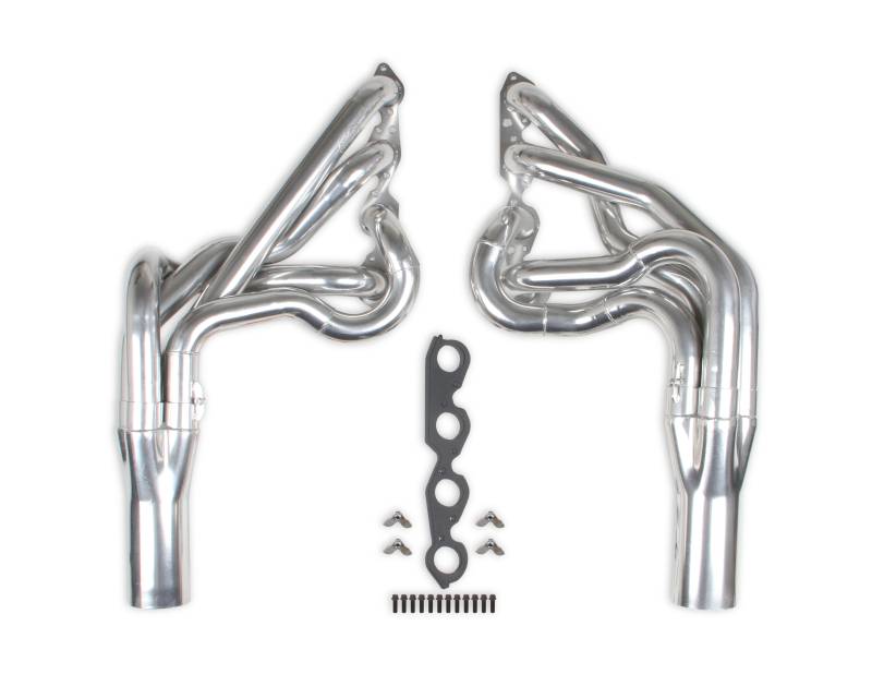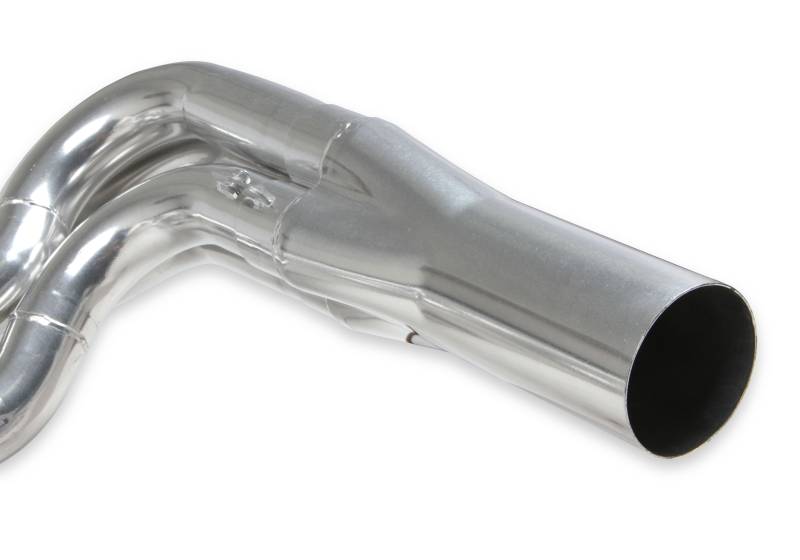 Hooker Adjustable race headers allow you to change your header primary tube lengths, collector lengths and diameters and collector types (Classic 4 into 1, Merged and Split-Flow). By altering the relationship between the primary length and collector diameter and length it is possible to increase or decrease the torque and horsepower output at any specific R.P.M. level. For a slick track the header primaries or collectors can be shortened to decrease the low end torque for better traction. Larger diameter collectors will also reduce low end torque. On a good track with lots of bite, extending the primaries or collectors will pick up bottom end power for a harder launch and awesome e.t.'s. Smaller collector diameters will also increase low end torque. Hooker adjustable headers have taken more Pro Stock drivers to the championship than any other brand.