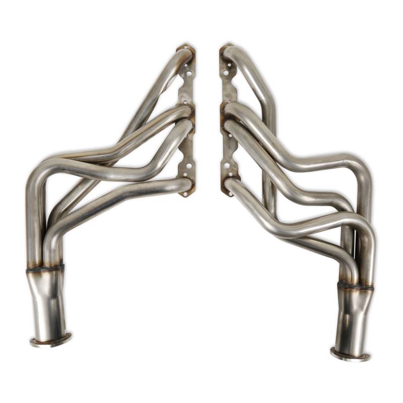Hooker Competition headers offer the best value in the high performance header market. Designed for the value-conscious buyer, Hooker Competition headers offer premium features at a very competitive price. Made of durable 304 stainless steel tubing, the Hooker Competition header design utilizes a long transition collector to reduce back pressure and increase exhaust flow. A perfect sealing surface is assured with the 5/16" machined flanges. Experience has proven that this flange size is ideal to maintain header integrity and be pliable enough to seal each exhaust port. Tubing is mandrel-bent to maintain metal strength and provide consistent tube diameter at radii to maximize performance. Hooker Competition headers have a standard finish that features a heat-cured, high-heat-resistant paint. Optionally, the famous Hooker Ceramic Thermal Barrier Coating is available.
