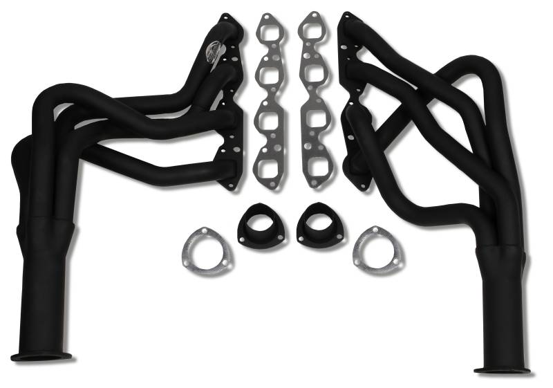 Hooker Competition headers offer the best value in the high performance header market. Designed for the value-conscious buyer, Hooker Competition headers offer premium features at a very competitive price. Made of durable 16 gauge mild steel tubing, the Hooker Competition header design utilizes a long transition collector to reduce back pressure and increase exhaust flow. A perfect sealing surface is assured with the 5/16" machined flanges, with welded O-ring seals. Experience has proven that this flange size is ideal to maintain header integrity and be pliable enough to seal each exhaust port. Tubing is mandrel-bent to maintain metal strength and provide consistent tube diameter at radii to maximize performance. Hooker Competition headers have a standard finish that features a heat-cured, high-heat-resistant paint. Optionally, the famous Hooker Ceramic Thermal Barrier Coating is available.