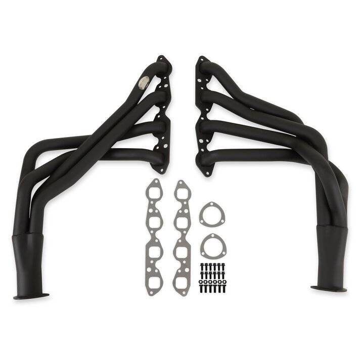 Hooker Competition headers offer the best value in the high performance header market. Designed for the value-conscious buyer, Hooker Competition headers offer premium features at a very competitive price. Made of durable 16 gauge mild steel tubing, the Hooker Competition header design utilizes a long transition collector to reduce back pressure and increase exhaust flow. A perfect sealing surface is assured with the 5/16" machined flanges, with welded O-ring seals. Experience has proven that this flange size is ideal to maintain header integrity and be pliable enough to seal each exhaust port. Tubing is mandrel-bent to maintain metal strength and provide consistent tube diameter at radii to maximize performance. Hooker Competition headers have a standard finish that features a heat-cured, high-heat-resistant paint. Optionally, the famous Hooker Ceramic Thermal Barrier Coating is available.