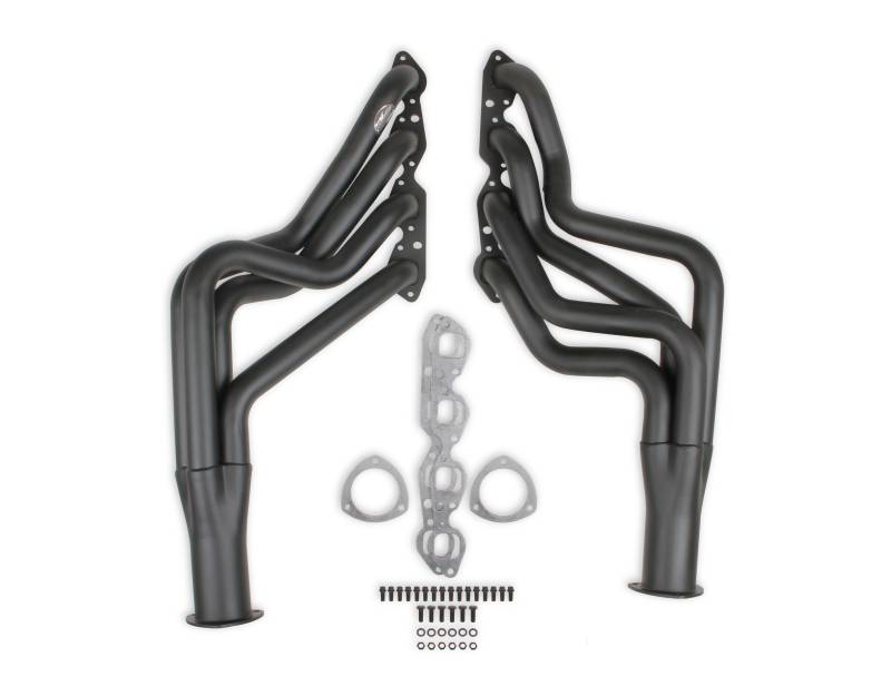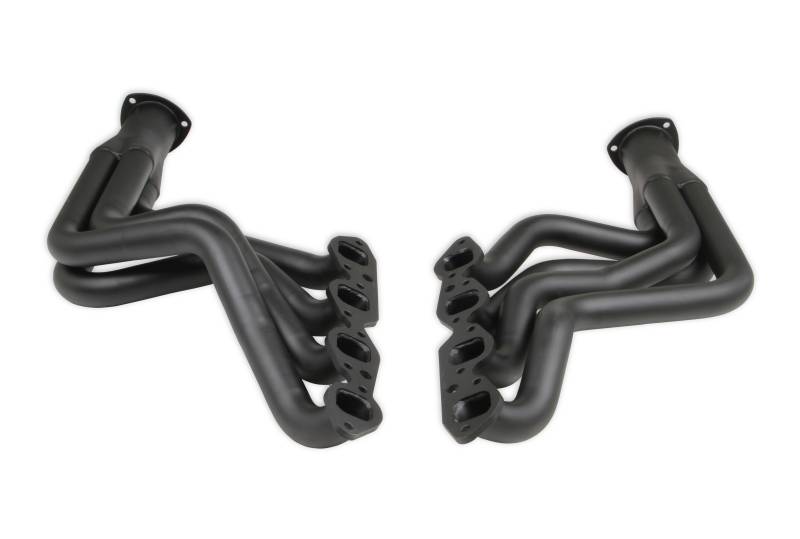 Hooker Competition headers offer the best value in the high performance header market. Designed for the value-conscious buyer, Hooker Competition headers offer premium features at a very competitive price. Made of durable 16 gauge mild steel tubing, the Hooker Competition header design utilizes a long transition collector to reduce back pressure and increase exhaust flow. A perfect sealing surface is assured with the 3/8" machined flanges. Experience has proven that this flange size is ideal to maintain header integrity and be pliable enough to seal each exhaust port. Tubing is mandrel-bent to maintain metal strength and provide consistent tube diameter at radii to maximize performance. Hooker Competition headers have a standard finish that features a heat-cured, high-heat-resistant paint. Optionally, the famous Hooker Ceramic Thermal Barrier Coating is available.