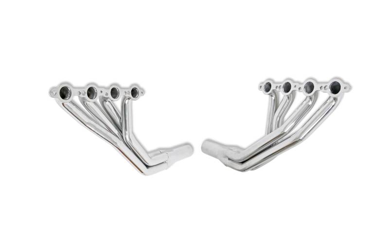 These swap headers allow enthusiasts to drop an LS (all exc. LS7) engine into the ever popular 1955-1957 Chevy. These new headers were designed to fit with a stock gear box or Saginaw 605 gear box only. If using a unisteer rack system, see part # 2293-1HKR. They are a true 1-3/4" long tube design to sufficiently maximize the torque and horsepower of the free breathing LS engines.\nThey are available in high temp black paint, silver ceramic or Hooker's brand new "Darkside" black ceramic.