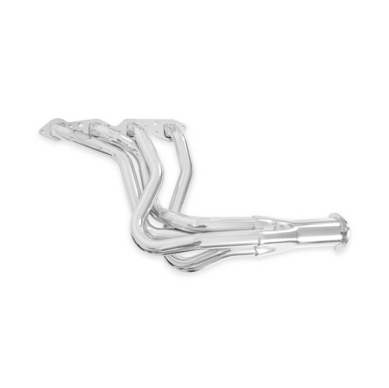 Hooker Competition headers offer the best value in the high performance header market. Designed for the value-conscious buyer, Hooker Competition headers offer premium features at a very competitive price. Made of durable 16 gauge mild steel tubing, the Hooker Competition header design utilizes a long transition collector to reduce back pressure and increase exhaust flow. A perfect sealing surface is assured with the 5/16" machined flanges, with welded O-ring seals. Experience has proven that this flange size is ideal to maintain header integrity and be pliable enough to seal each exhaust port. Tubing is mandrel-bent to maintain metal strength and provide consistent tube diameter at radii to maximize performance. Hooker Competition headers have a standard finish that features a heat-cured, high-heat-resistant paint. Optionally, the famous Hooker Ceramic Thermal Barrier Coating is available.
