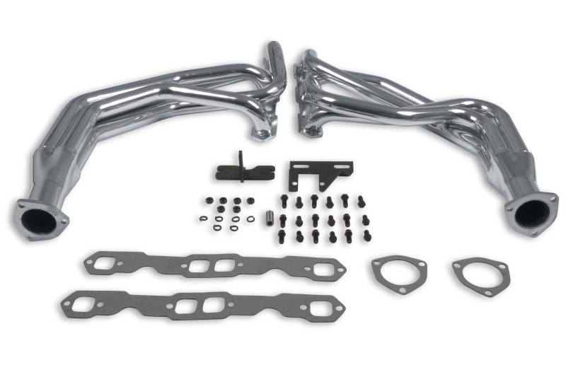 Does not fit with angel plug or raised port heads. Hooker Competition headers offer the best value in the high performance header market. Designed for the value-conscious buyer, Hooker Competition headers offer premium features at a very competitive price. Made of durable 16 gauge mild steel tubing, the Hooker Competition header design utilizes a long transition collector to reduce back pressure and increase exhaust flow. A perfect sealing surface is assured with the 5/16" machined flanges, with welded O-ring seals. Experience has proven that this flange size is ideal to maintain header integrity and be pliable enough to seal each exhaust port. Tubing is mandrel-bent to maintain metal strength and provide consistent tube diameter at radii to maximize performance.