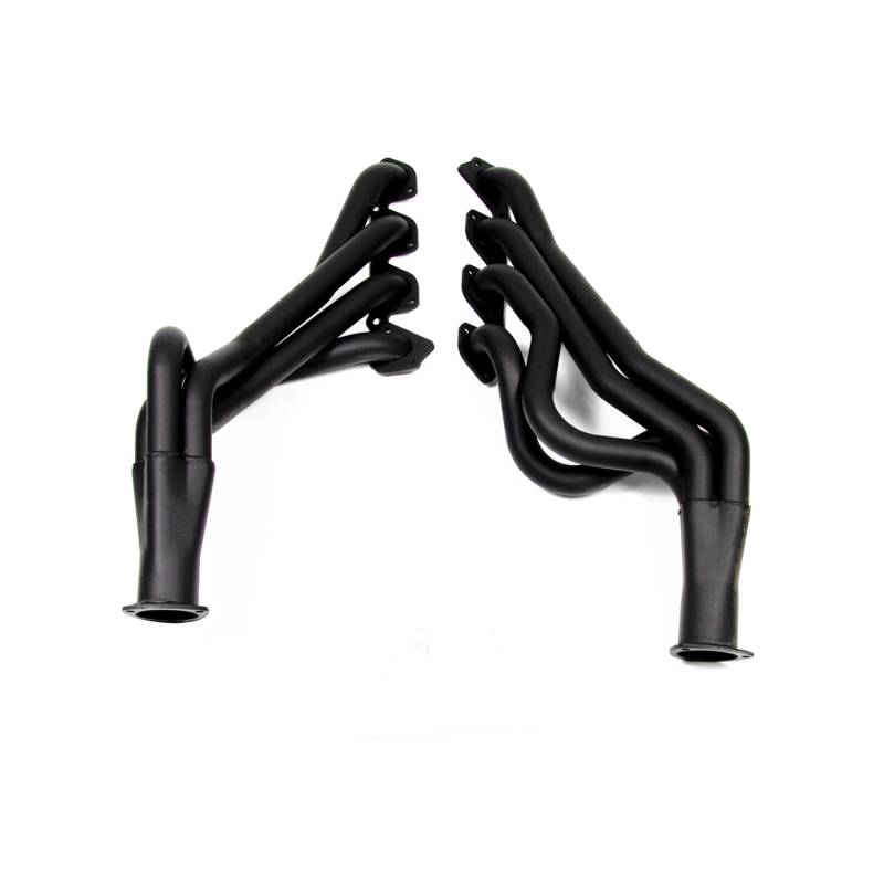 Hooker Competition headers offer the best value in the high performance header market. Designed for the value-conscious buyer, Hooker Competition headers offer premium features at a very competitive price.\nMade of durable 16 gauge mild steel tubing, the Hooker Competition header design utilizes a long transition collector to reduce back pressure and increase exhaust flow. A perfect sealing surface is assured with the 5/16" machined flanges, with welded O-ring seals. Experience has proven that this flange size is ideal to maintain header integrity and be pliable enough to seal each exhaust port. Tubing is mandrel-bent to maintain metal strength and provide consistent tube diameter at radii to maximize performance.\nHooker Competition headers have a standard finish that features a heat-cured, high-heat-resistant paint. Optionally, the famous Hooker Ceramic Thermal Barrier Coating is available.