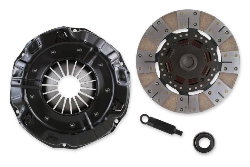 Hays Street 650 single disc kits are designed handle highly modified engines up to 650 naturally aspirated horsepower (600HP for forced induction & nitrous combinations). Designed as a true Street/Strip clutch for spirited high performance driving or frequent track use. The high performance disc utilized in the Street 650 has an 8-spring hub with encapsulated damper springs and a sintered metallic friction surface. The encapsulated spring can handle 3 times the shock load versus a standard coil spring. Sintered metallic material provides a degree of slippage on vehicle launch to prevent violent engagement characteristics found in paddle-style metallic discs. Each kit includes pressure plate, clutch disc, throwout bearing, alignment tool, and instructions.