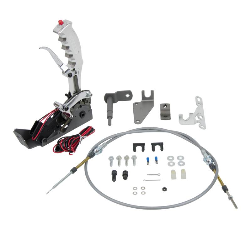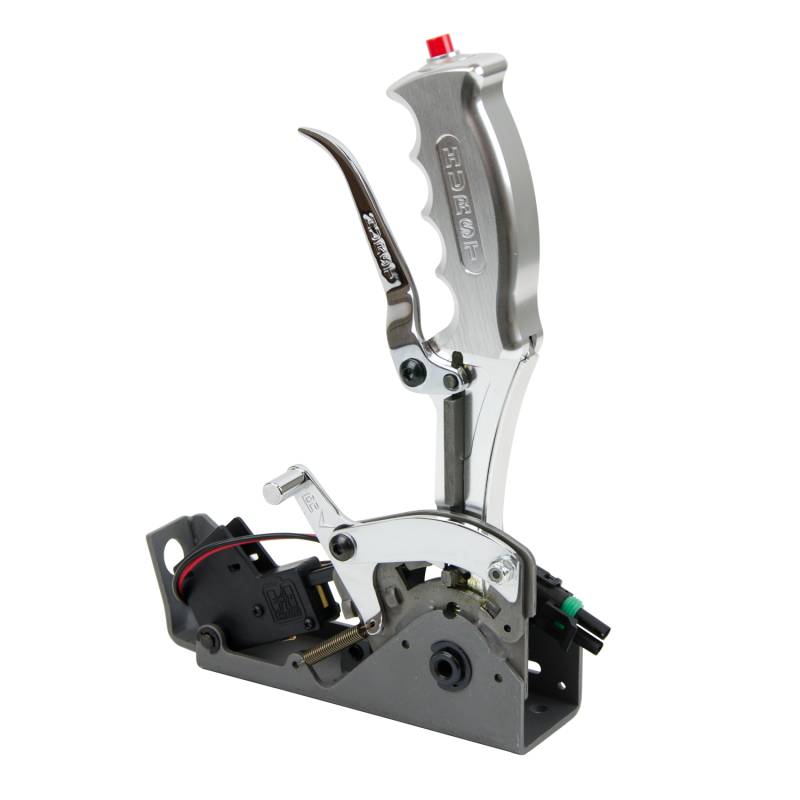 The Hurst® Pistol-Grip Quarter Stick® shifter provides positive gear change control for both street and race applications. Its compact size fits easily in race cars with limited space and is very lightweight at only 2.5 pounds. Features include black oxide coated steel construction, 1018 hardened steel gate plate, ergonomic billet aluminum shift handle that incorporates a momentary switch which can be used to activate a Hurst Roll/Control, a trans-brake, or a nitrous system. Also comes with a factory-installed neutral safety switch, chrome-plated trigger, and spring-loaded reverse Loc/Out mechanism that complies with NHRA/IHRA safety rules. Includes all necessary hardware, a 5-foot long shifter cable, and installation instructions. Note: Optional aluminum mounting bracket, backup light switch, and lightweight aluminum or plastic shifter covers are available separately. Does not fit early GM cast iron PG transmission.