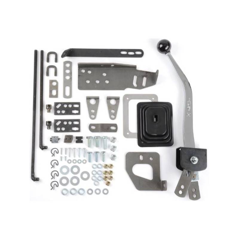 The popular Hurst® Indy® Universal 3-speed shifter fits many model 3-speed transmissions starting with 1949-later vehicles (see installation notes below) and comes with universal brackets, levers and shift rods to fit and fabricate a quality replacement shifter on your vintage vehicles. This shift kit is a perfect replacement for old floor shifters, or is an ideal choice for a column shift conversion to the floor. Includes 12.5 inch long chrome shifter stick. Fits many popular 3-speed manual transmissions. Kits comes with shifter with black shift knob, linkage, hardware and installation instructions.\nNotes: Fit and fabrication for installation maybe necessary. Because this is a universal shifter, you may have to bend shift rods or alter brackets to clear obstacles such as a cross member and speedometer cables.