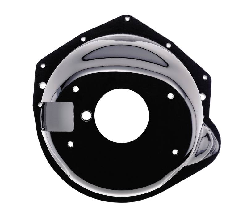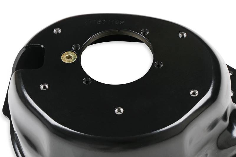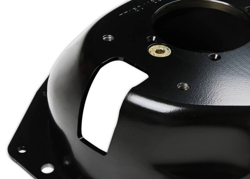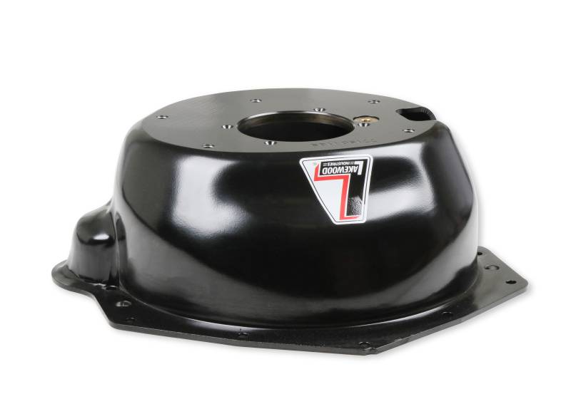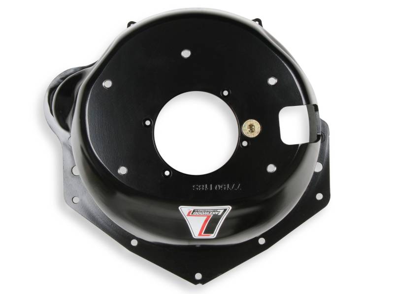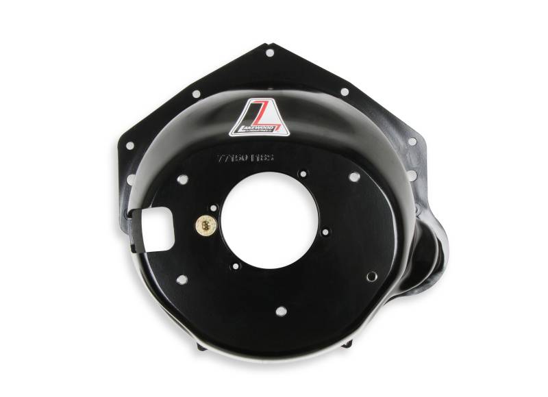 The Lakewood 77-150 bellhousing connects small block and big block Chevy engines to transmissions utilizing the GM standard pattern such as the Muncie, Saginaw, Borg Warner T10, and Tremec TKO or TKX transmissions. This bellhousing is designed to fit GM full and midsized vehicles from '58 - '87. This bellhousing is not S.F.I. certified which is required by many sanctioning bodies for cars running 11.49 or faster in the quarter mile. The adapter bellhousing is an excellent choice for street rods, street machines, or truck applications where the use of a S.F.I. bellhousing is not necessary. This bellhousing does not include or accept an engine block plate.\nOEM starters are recommended for ease of fitment. It is very important that the tooth count (153 or 168) of the starter match the tooth count of the flywheel to ensure proper engagement. Two primary options: a 12 3/4-inch flywheel (153 teeth) where the nose cone will have two attachment bolt holes across from each other (inline) and a 14-inch flywheel (168 teeth) where the attachment bolt holes will be offset (diagonal). This applies mainly to factory GM starters on passenger cars/light trucks and does not apply to later model versions (w/ gear reduction) or aftermarket and mini starters. Be sure to match your clutch to your flywheel as well.
