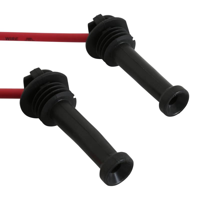 Engineered from the inside out, the 8.5 offers everything you have ever wanted in a wire; incredibly low resistance without electronic interference! In a single 12 inch length of Super Conductor Wire there is only 40 - 50 ohms of resistance! That is the lowest resistance of any helically wound wire. To accomplish this, we use a copper alloy conductor due to it's great voltage carrying capabilities. The low resistance results in less loss in spark energy so more reaches the spark plug. The conductor is wound extremely tight around a special center core. So tight in fact, that there is over 40 feet of conductor wrapped into a single foot of plug wire. This winding procedure, combined with a ferro-magnetic impregnated center core, produces an extremely effective Electro Magnetic Interference (EMI) "choke". This choke, or suppression capability, keeps the EMI inside the wire where it cannot interfere with other electronics on your vehicle. The outer sleeve that surrounds the conductor assembly is just as impressive. A proprietary blend of silicone and synthetic material produce a sleeve that is highly resistant to high heat as well as abrasion and tears. The MSD 8.5mm Super Conductor Plug Wire is available in Universal Kits and Bulk Lengths.