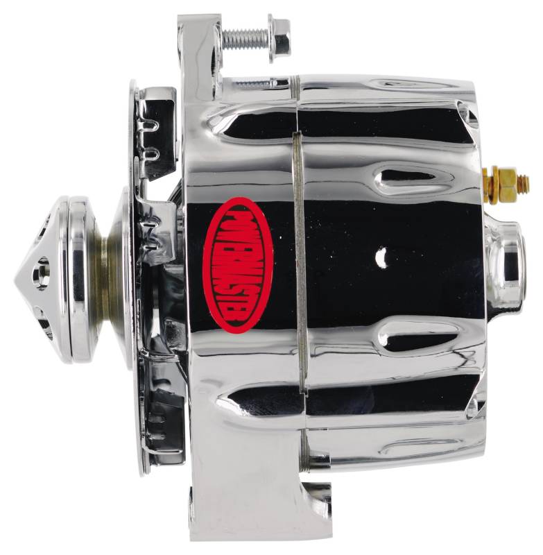 The ultimate custom billet look at affordable prices. Smooth die cast housing with teardrop design. One to three wire. Available in 100 and 140 amp output. Custom high volume fan is optional. Largest selection of fans, pulleys, nose cones and baffle plates in the industry. Smooth back with special Powermaster vents for pull through cooling. Gold battery post. Available in 4 finishes. Proof of performance tags.
