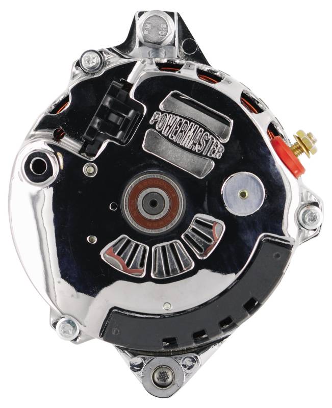 The ultimate custom billet look at affordable prices. Smooth die cast housing with teardrop design. One to three wire. Available in 100 and 140 amp output. Custom high volume fan is optional. Largest selection of fans, pulleys, nose cones and baffle plates in the industry. Smooth back with special Powermaster vents for pull through cooling. Gold battery post. Available in 4 finishes. Proof of performance tags.