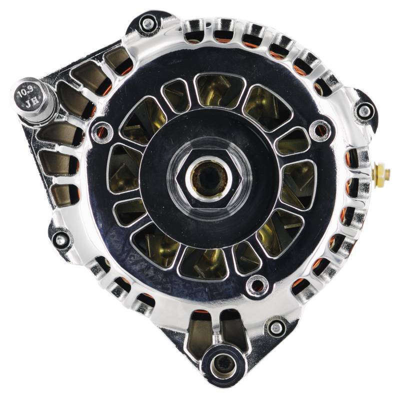 Alternator; Chrysler Upgrade; AD230; 165 Amp; 100 Idle; 2 Groove V Type Pulley; 1 Wire; Side Battery Post; Incl. 2 Spacers; Chrome;