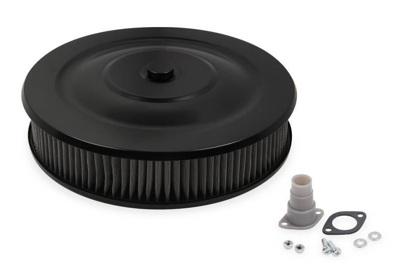 These air cleaners have an updated look with powder coated finishes and optional pre-oiled washable filter elements. Choose from flat black, orange, blue, silver vein, or a traditional chrome finish. The pre-oiled washable filter elements flow more air than standard paper elements and are color keyed to provide a great look that matches the powder coated finish. Each kit includes the filter assembly with filter element, mounting stud, knurled nut, PCV (positive crankcase ventilation) or smog adapter & hardware.