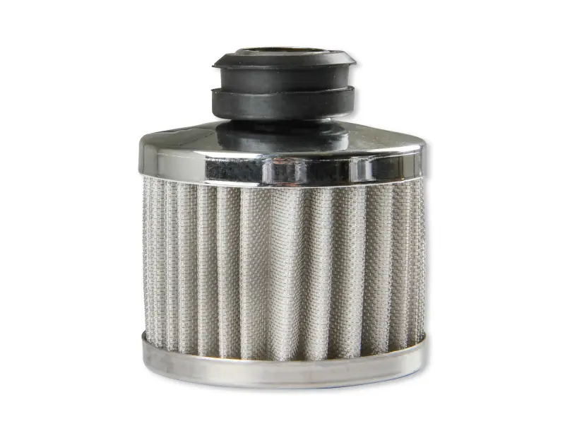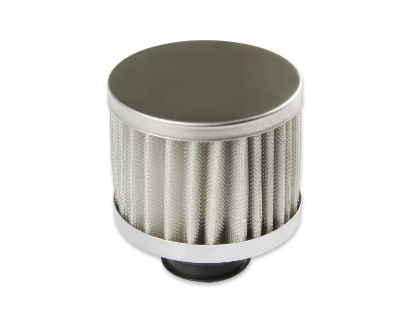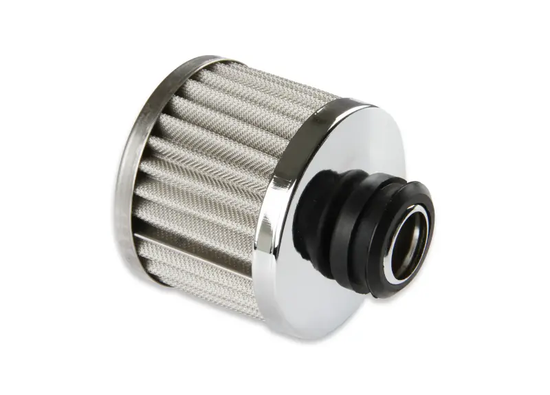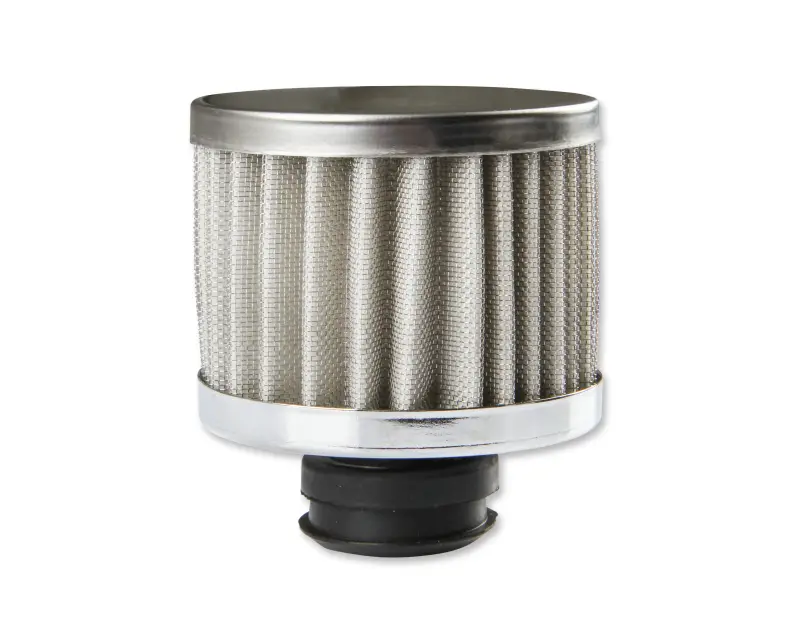 Mr. Gasket open element breather measures 3-1/8 inch tall and features a chrome plated 3 inch o.d. (outer diameter)top and bottom. The breather element features a synthetic filter which assures positive filtration, yet can easily be cleaned with soap and water. Sold individually, rubber grommet is included.