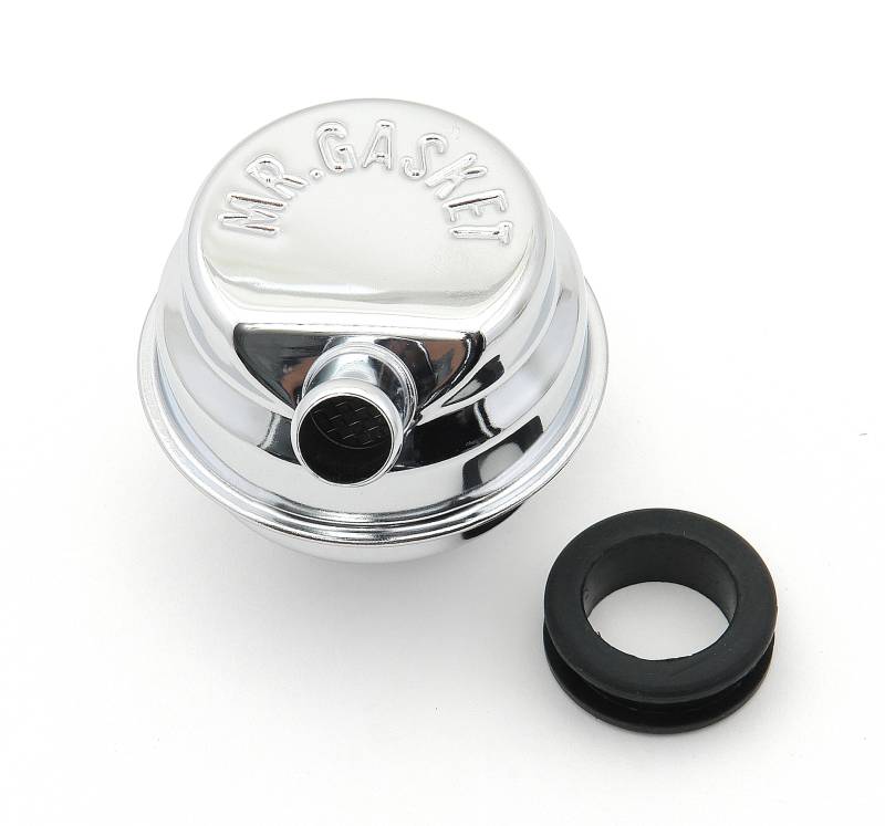 Chrome plated breather cap is ideal for race car vacuum balance systems, as well as original equipment applications with positive crankcase ventilation (PCV).
