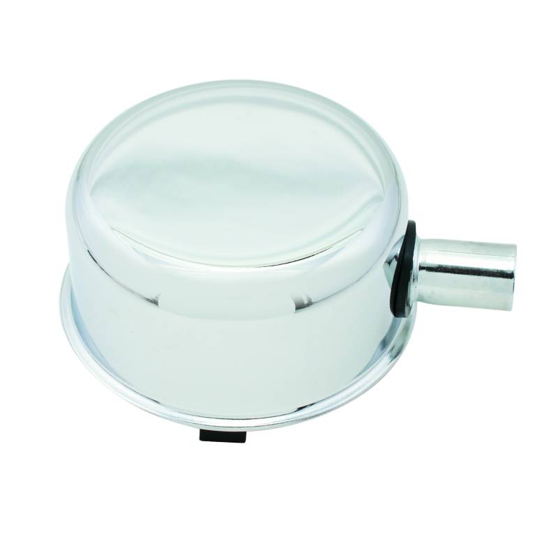 This chrome-plated steel push-on breather/oil filler cap fits over your oil filler tube. It has a side fitting for easy PCV hose (positive crankcase ventilation) hook up. Perfect compliment to Mr. Gasket matching chrome oil filler tube, #2066