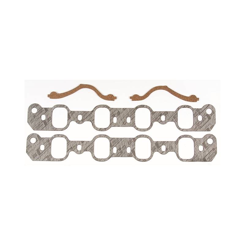 Mr. Gasket Performance Intake Gaskets are manufactured from cellulose/nitrile composition gasket material. This is a low density material that conforms well to irregular surfaces and has very good crush resistance at high flange pressures. They provide excellent sealing and durability as the material is designed for sealing gasoline, oils, water and coolant in applications up to 350 degrees Fahrenheit. While die-cut for an excellent fit, they can be trimmed if necessary for modified port applications. Comes complete with front & rear manifold end seals. For original equipment replacement, high performance street, drag race and oval track.