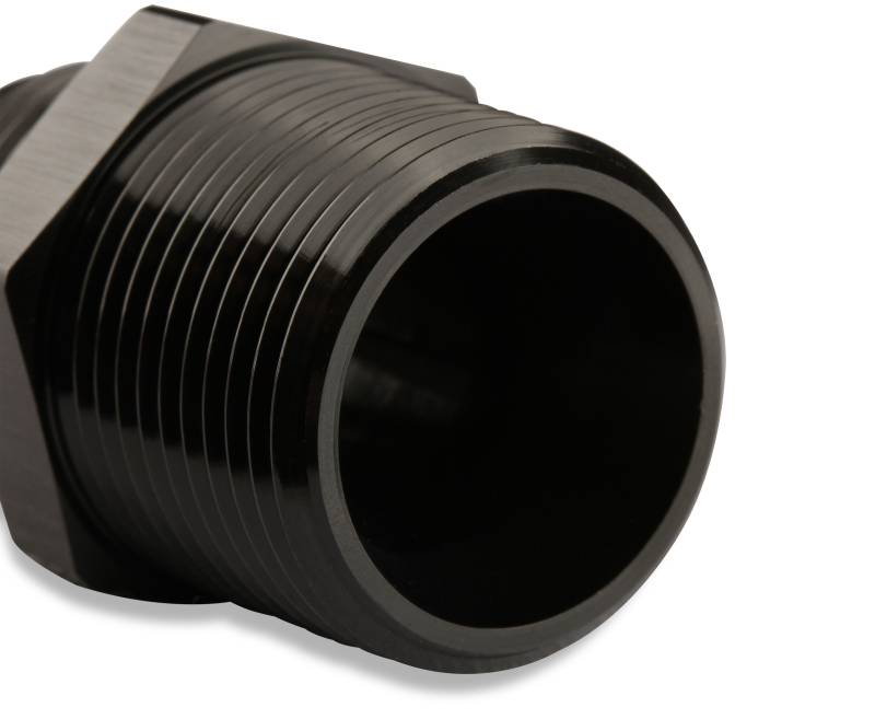 Mr. Gasket NPT to AN Flare Adapter Fitting is economically priced and features a black anodized satin finish.