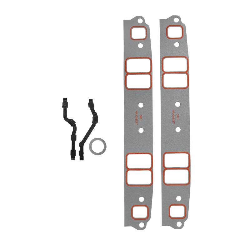 Mr. Gasket Ultra-Seal Intake Manifold Gasketss are manufactured from cellulose/nitrile composition gasket material. Provides excellent sealing and durability. Incorporates Silicone beading around each intake and water outlet port to provide additional sealing strength on both sides of each gasket. No gasket sealer required. For original equipment replacement, high performance street, drag race and oval track use. Includes manifold end seals and distributor gasket.