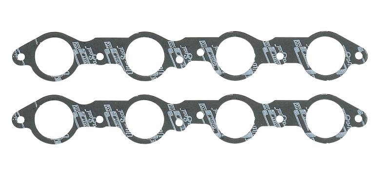 Manufactured from high-temperature steel core/graphite faced exhaust material. Expanded steel core provides stability and maximum torque retention to eliminate gasket failure. Graphite facing provides excellent heat resistance and thermal conductivity to transfer heat away from the cylinder head. Conforms to and seals minor surface irregularities. High recovery material allows header or manifold flange to stay sealed if flange loses clamp-load. Can be trimmed if necessary for modified port applications. For original equipment replacement, high performance street, drag race and oval track use.