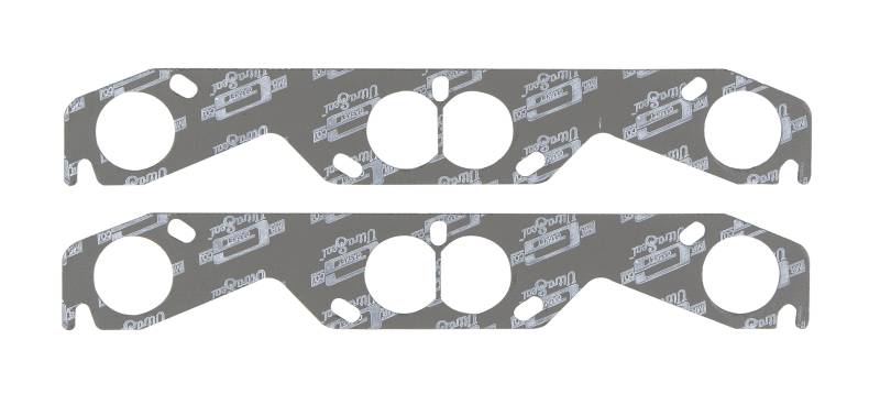 Manufactured from high-temperature steel core/graphite faced exhaust material. Expanded steel core provides stability and maximum torque retention to eliminate gasket failure. Graphite facing provides excellent heat resistance and thermal conductivity to transfer heat away from the cylinder head. Conforms to and seals minor surface irregularities. High recovery material allows header or manifold flange to stay sealed if flange loses clamp-load. Can be trimmed if necessary for modified port applications. For original equipment replacement, high performance street, drag race and oval track use.