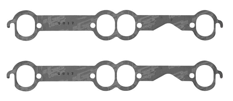 Manufactured from high-temperature steel core/graphite faced exhaust material. Expanded steel core provides stability and maximum torque retention to eliminate gasket failure. Graphite facing provides excellent heat resistance and thermal conductivity to transfer heat away from the cylinder head. Conforms to and seals minor surface irregularities. High recovery material allows header or manifold flange to stay sealed if flange loses clamp-load. Can be trimmed if necessary for modified port applications. For original equipment replacement, high performance street, drag race and oval track use.