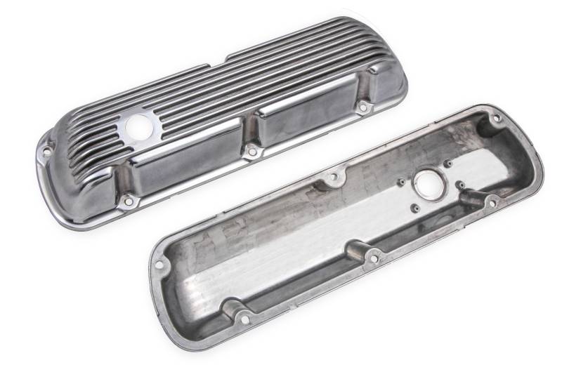 These valve covers are constructed of high quality die-cast aluminum for an excellent fit. Polished finish with as cast area between the fins. Allen head mounting bolts & washers included. Sold as a pair.