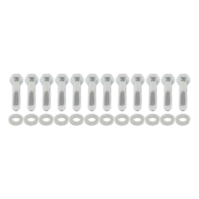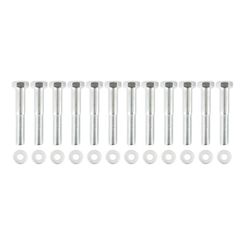 These grade 5 hex head bolts are brite zinc plated for protection and appearance. Hardened flat washers provide uniform torque & prevent galling on aluminum manifolds. Includes twelve (12) 5/16 inch-18 x 2 inch bolts & washers