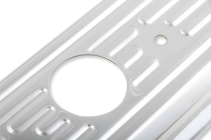 Chrome plated steel valve cover caps. Fits over original valve covers on 1987-1997 GM (General Motors) small block truck applications only. These caps fit OVER the top of the original equipment valve covers & the original equipment covers use the stock fill cap, breathers, PCV, grommets, and hardware.