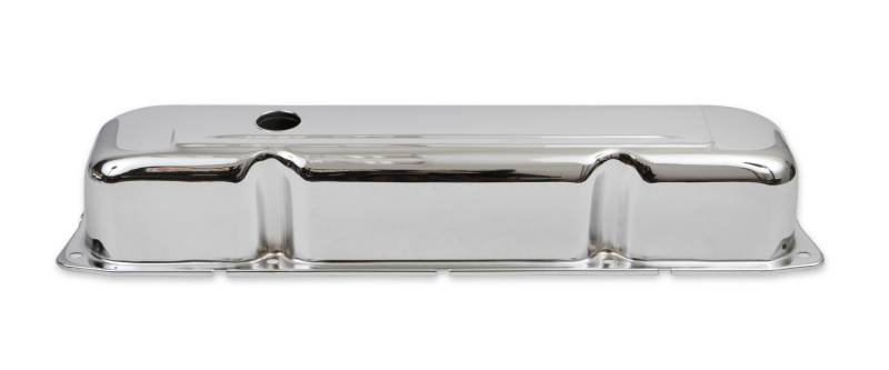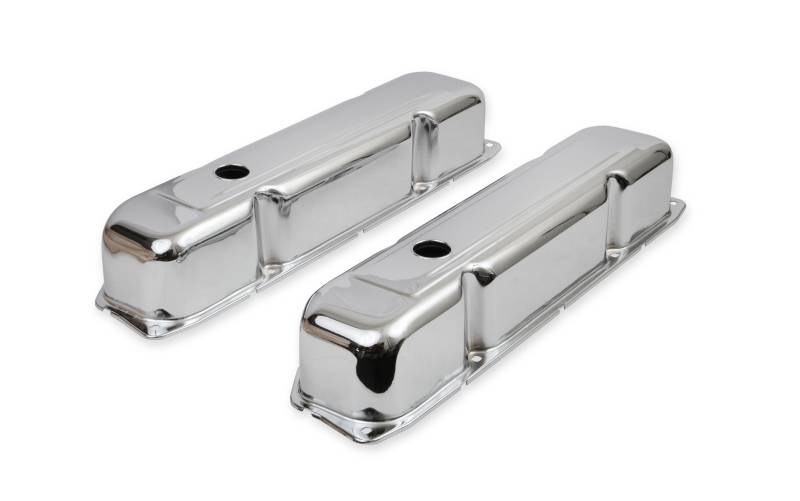 Made of chrome plated steel. Smooth top with original equipment height and internal baffle. Features one breather/oil filler cap opening per valve cover. Hardware and gaskets sold separately.