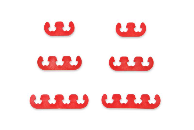 Keep your 7mm or 8mm ignition wires separated to avoid ignition wire cross firing with Mr. Gaskets wire separator kit. Routes wires away from exhaust heat for a clean look. Made of heat resistant red ABS plastic. Great for competition and street use.