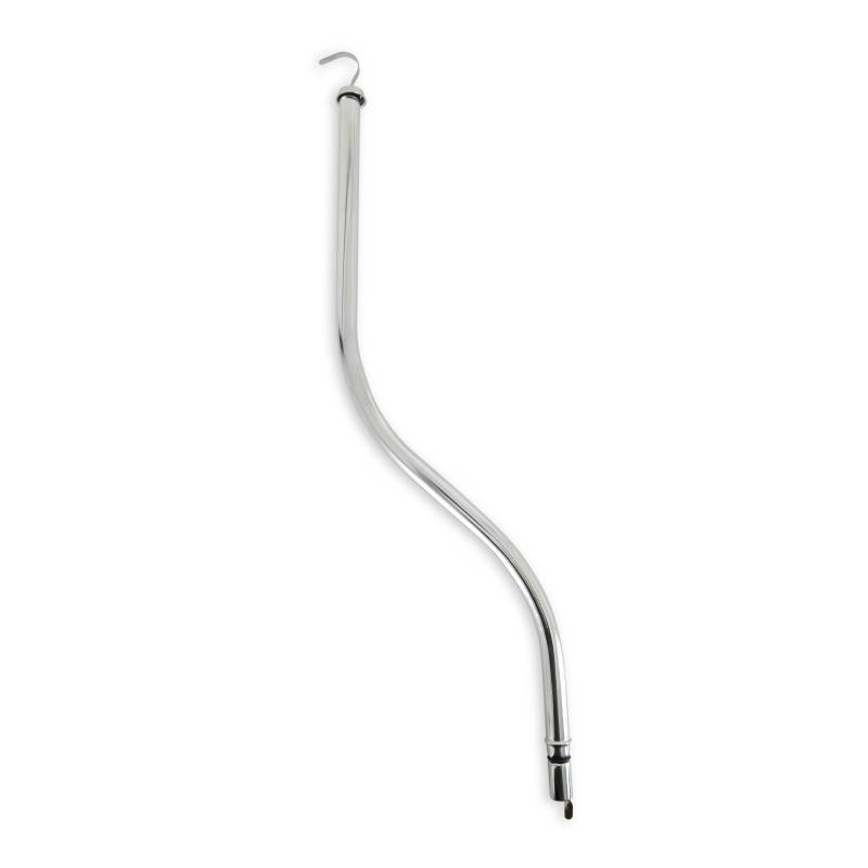 Includes dipstick with chromed steel handle and chromed steel dipstick tube with mounting tab. 27 inch long.