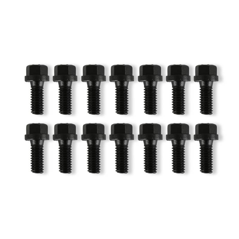 When installing headers you will need header bolts, factory exhaust manifold bolts won't work. These Mr. Gasket Header Bolts are Grade 5 for strength, black oxide coated, and have a compact hex head that is ideal for use where space is minimal - your typical header flanges.\nSold as a set of 14.