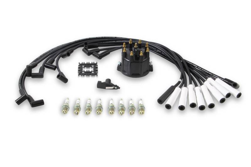 Everything you need to Super Tune Up your truck, van, or Jeep engine! The kits includes a high performance cap and rotor. A set of 8mm Extreme 9000 Spiral Core wires. This kit also includes the ACCEL classic copper core spark plugs to fire your engine up.