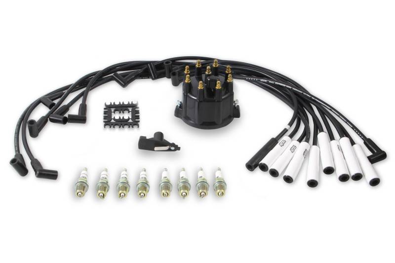 Everything you need to Super Tune Up your truck, van, or Jeep engine! The kits includes a high performance cap and rotor. A set of 8mm Extreme 9000 Spiral Core wires. This kit also includes the ACCEL classic copper core spark plugs to fire your engine up.
