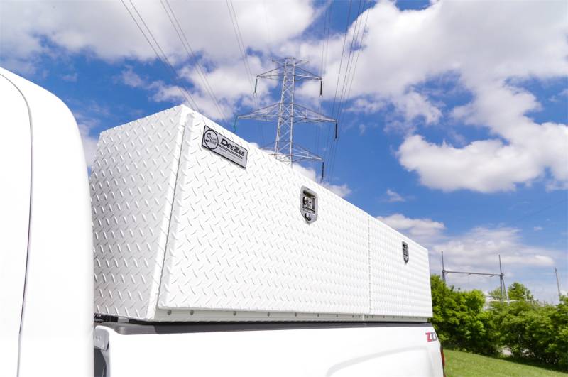 Dee Zee Tool Box - Topsider provides handy storage on top of your trucks bed rail. Constructed of durable Brite-Tread aluminum. Texture White powder coat, provides a matte black finish while it protects and prevents oxidation. Drop-down doors provide quick access to your tools. Locking stainless steel T-handle latches. C-Channel design resists leaks, incorporating a one-piece neoprene rubber bulb seal.