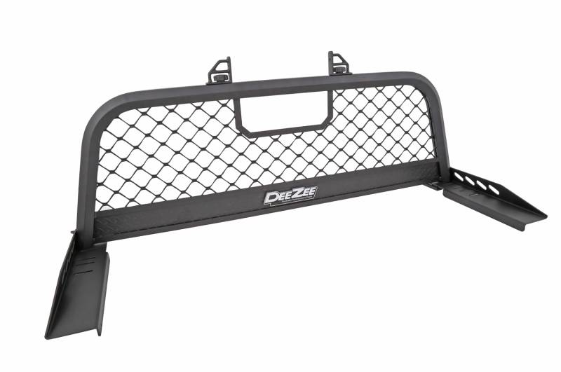 Cab Rack Dee Zee Cab Rack - Helps protect the rear of the pickups cab area. 100% aluminum construction provides non-rusting strength. Rear window protection screen consists of heavy duty ultra mesh. Integrated channel system offers endless accessory possibilities. Installs easily by bolting into vehicles stake pockets. Texture Black powder coat, provides a matte black finish while it protects and prevents oxidation. 100 Pct. Aluminum Construction Helps Protect The Rear Of The Pickups Cab Area Rear Window Protection Screen Front Heavy Duty Mesh Integrated Channel System Installs Easily Into Vehicles Stake Pockets
