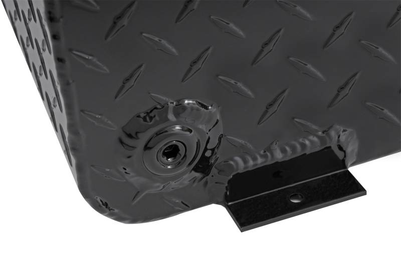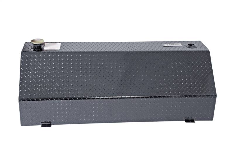 Dee Zee Transfer Tanks - A safe and convenient means for transporting non-flammable liquids. Constructed of heavy gauge Brite-Tread aluminum. Black powder coat finish. Radius curve design eliminates key weld pressure points. Tanks feature stability baffles, lockable cap, 3/8 in. drainage plug, and venting coupler. Tanks are intended for private use (non-commercial). Not designed for use as an auxiliary fuel system. Not for use with gasoline. Does not meet title 49 of the United Stated Federal Registry.