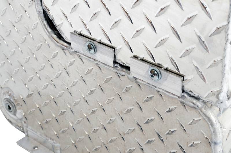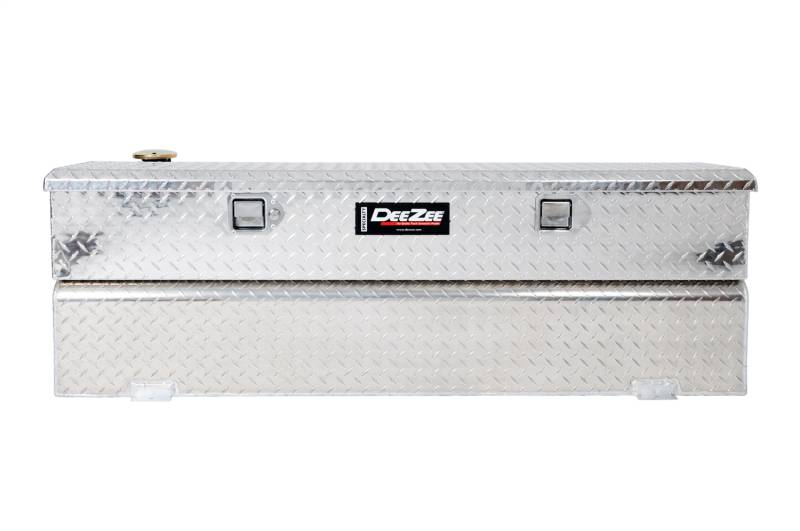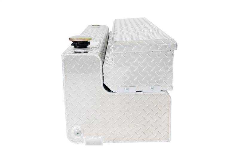 Dee Zee Combo Tanks - The convenience of a utility chest connected to a liquid transfer tank. Low profile design to fit under most tonneau covers. Constructed of heavy gauge Brite-Tread aluminum. Radius curve design eliminates key weld pressure points. Tanks feature stability baffles, lockable cap, 3/8 in. drainage plug, and venting coupler. Tanks are intended for private use (non-commercial). Not designed for use as an auxiliary fuel system. Not for use with gasoline. Does not meet title 49 of the United Stated Federal Registry governing transportation.