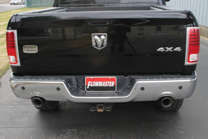 These high quality polished stainless steel exhaust tips are direct-fit replacements for the factory tips that come on 2009-2024* RAM 1500 trucks with the 5.7L Hemi engine and factory dual exhaust. The tips come with the correct matching ball flange style connection and re-use the factory clamps for a quick and easy installation and are constructed from 304 stainless steel. The tips feature double-wall construction, have a large 4.00-inch diameter angle cut outlet and are embossed with the Flowmaster® logo telling the world your serious about performance. Sold as a Pair. Note: *Fits the Classic body 2019-2024 RAM 1500 with factory dual tailpipes.