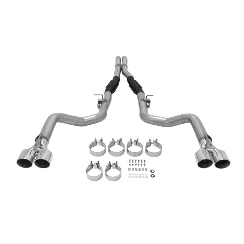 This Flowmaster® Outlaw Cat-back exhaust system is designed for the 2015-2023 Dodge Challenger SRT 392 and R/T Scat Pack models with the 6.4L engine, the SRT Hellcat with 6.2L engine, as well as the 2017-2021 R/T with the 5.7L engine. The system is perfect for the person looking for an aggressive exterior sound level at all times. The system includes dual 3.00-inch mandrel-bent stainless steel tubing flowing into our exclusive Scavenger Series® X-pipe for a deep unique sound while making maximum power. The tubing then runs into a pair of race-proven Outlaw® Series mufflers and the tailpipes include "dummy valve stands" to fool your factory actuators into thinking they're still operating the OE valves. This way, you always have that "wide-open" sound and performance without throwing a code. The system is then finished off with quad 3.50-inch 304 stainless steel embossed tips for a muscular look. The system is covered by our Lifetime Limited Warranty and includes all necessary parts and hardware for an easy installation you can do at home. Note: This system eliminates the Factory Exhaust Valves and provides "Dummy" valve stands so the Factory Actuators still work without throwing off a code.