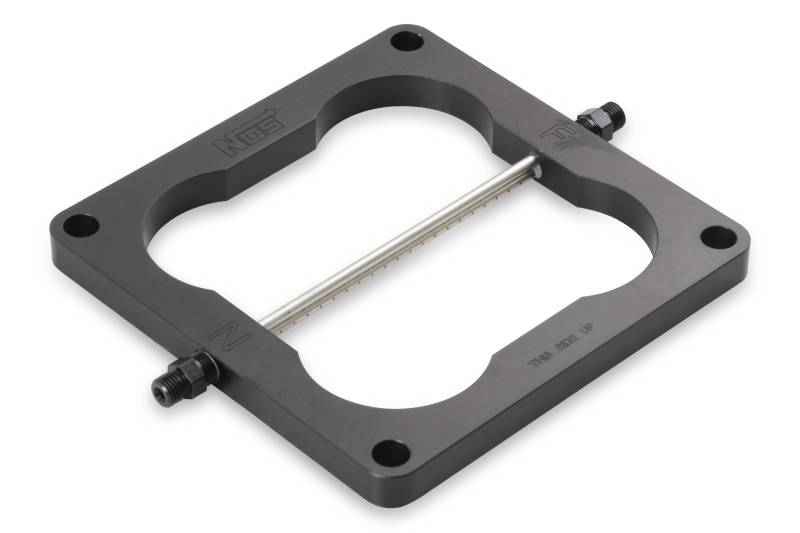 NOS is proud to now offer its popular Big Shot wet nitrous systems in black. These systems are adjustable from 190-300 horsepower and use a special fogging plate design that vastly improves nitrous flow, fuel atomization and mixture distribution. Our Big Shot plate utilizes a unique spray bar that is equipped with tiny orifices that are precisely located to efficiently dispense a powerful nitrous/gasoline mixture for unbelievable horsepower gains. Power output is adjustable from 190-300 horsepower simply by changing fuel and nitrous jets.\nThis single stage system includes everything needed including 6AN feed line, 1/2 inch fogging aluminum plate, black 10 lb bottle, solenoids, hardware, and instructions to complete the installation.
